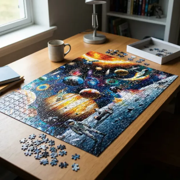 Puslespilsbrikkerne er rigtig stærke. Jeg kunne godt lide at se raketter og planeter blive samlet, mens jeg lavede det.