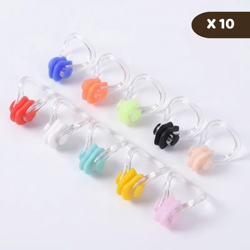10 stk. farverigt sæt med svømme-næseklemmer til børn