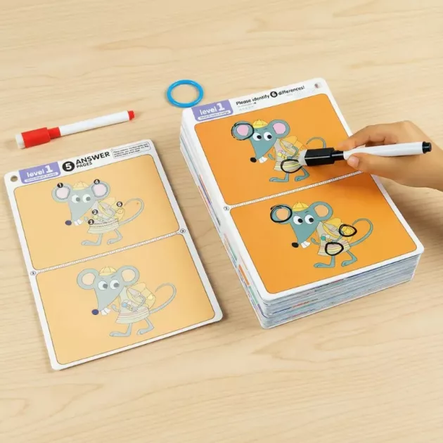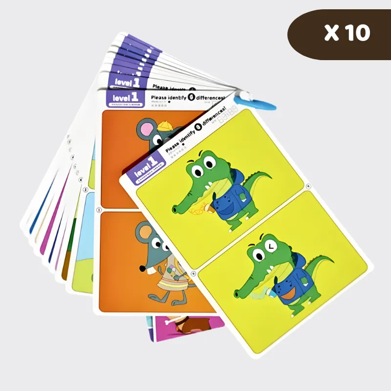 Børn nyder udfordrende lege, mens forældre værdsætter læringsøjeblikke. Find forskellene-kortene opfordrer til grundig tænkning gennem farverige scener og sjove opgaver. Tiden sammen bliver hyggelig, skærmfri og givende for alle.