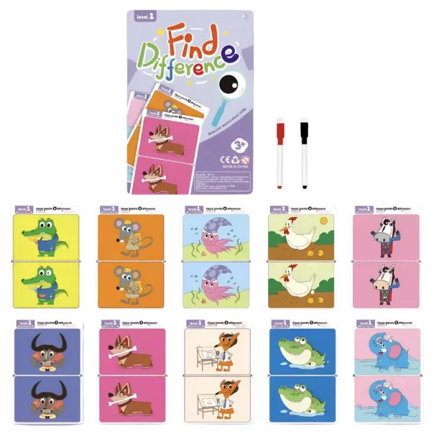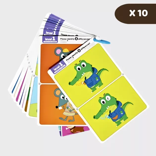 10 stk. Find Forskellene Billedkortspil for Børn