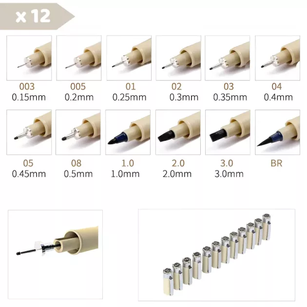 Alsidige Tegnemuligheder - Opmuntrer kunstnerisk udvikling med forskellige typer spidser. Hver pen understøtter forskellige projekter som tegerier, arkitektur og produkttegninger.
