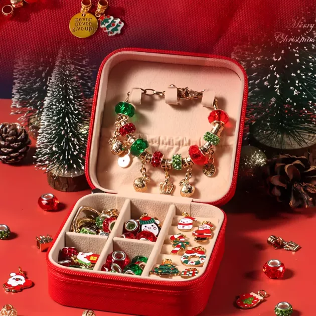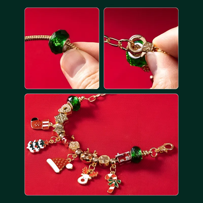 Jeg lavede mit helt eget julearmbånd! Farverne var lyse og glade. Det er utroligt, hvordan hver charm kan fortælle en historie.
