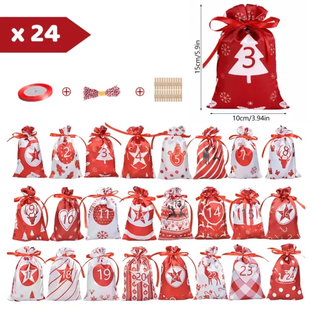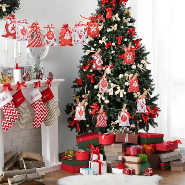 24 stk. Julekalenderposer Sæt – Tomme Hængende Poser