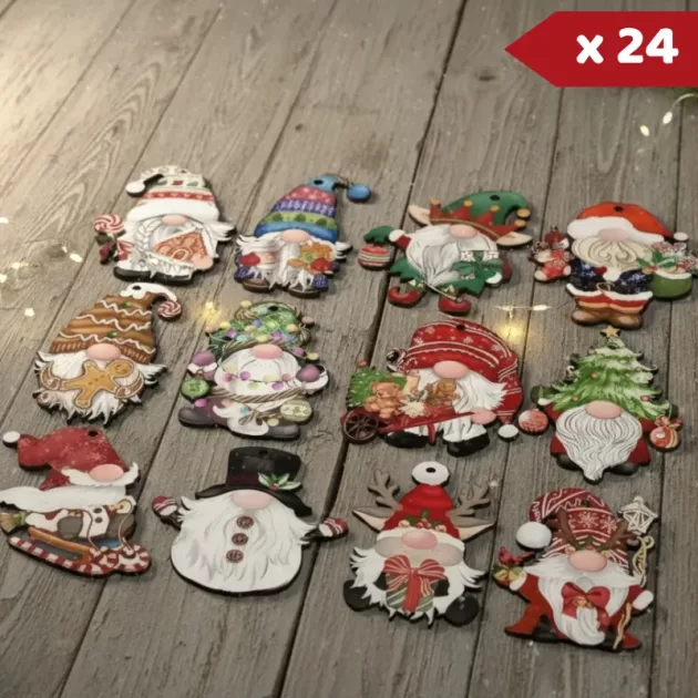 24 stk. Sød Juletræsdekoration Træ Hængende Ornamenter