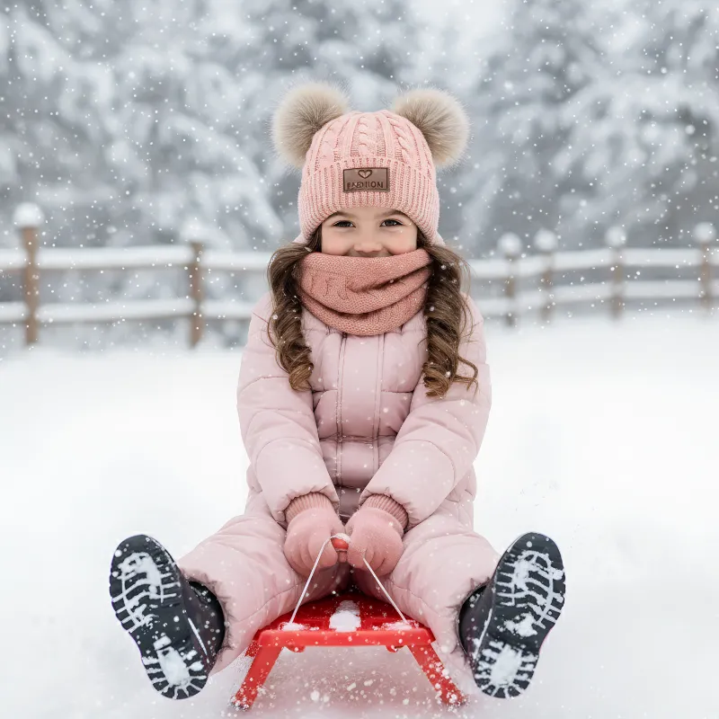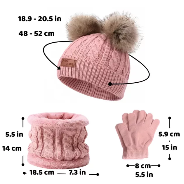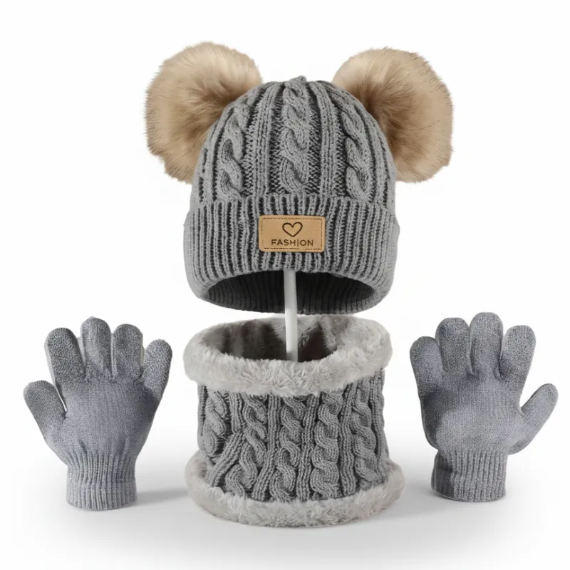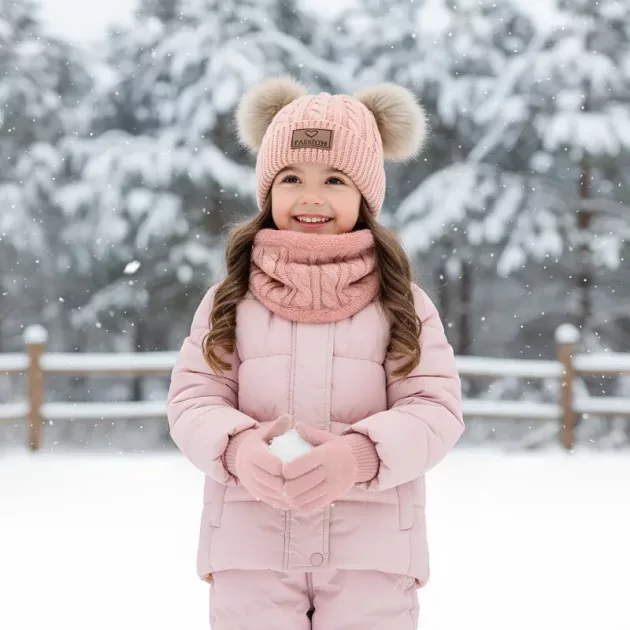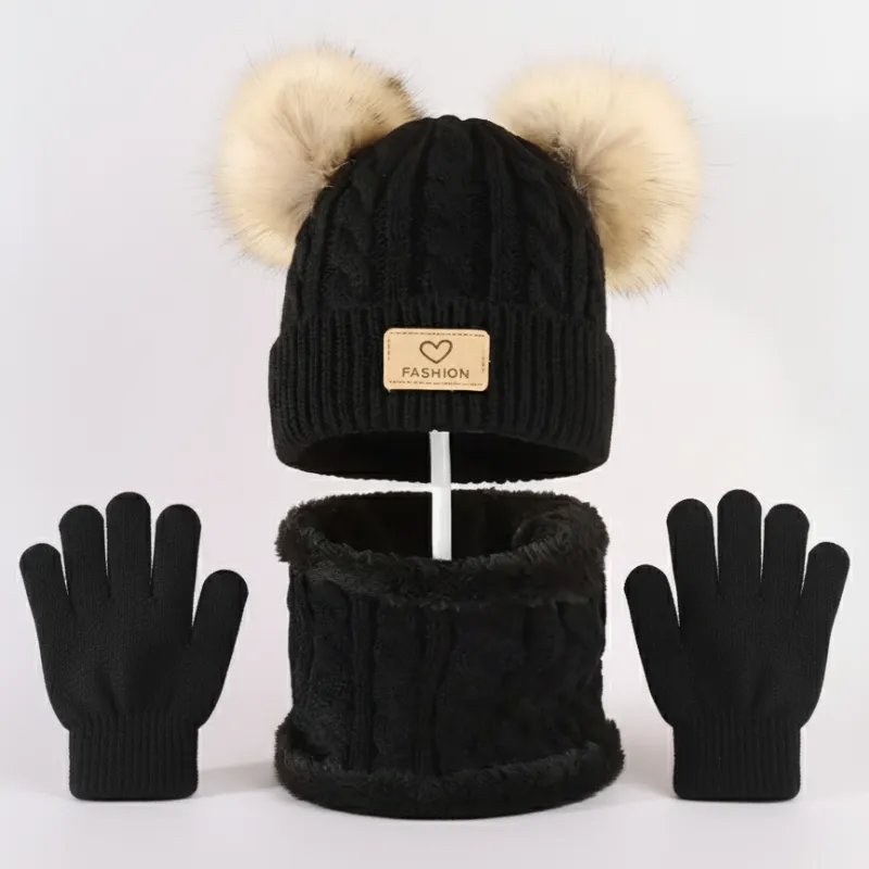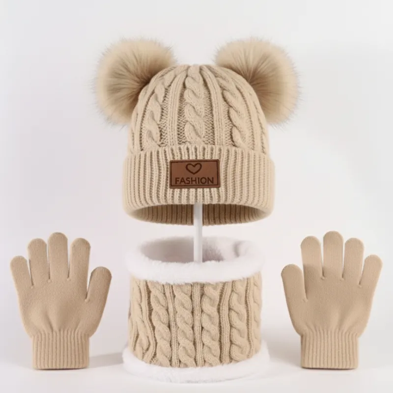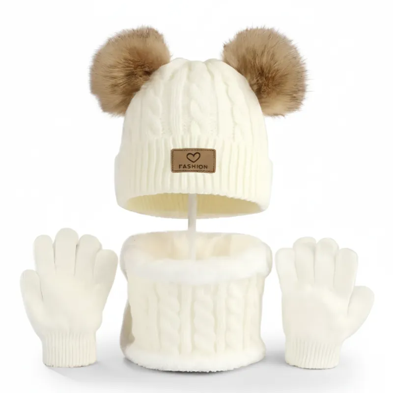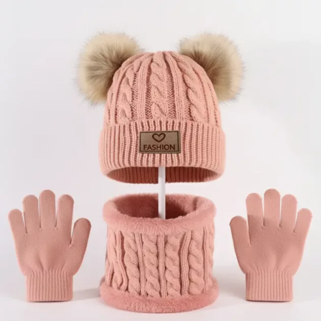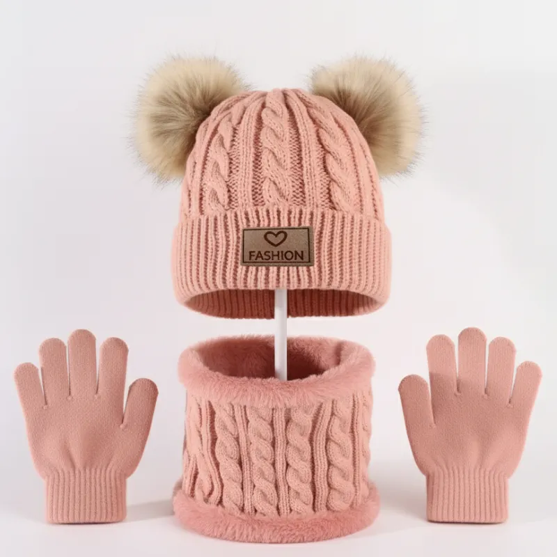 3-delt Sæt: Sød Varm Bomulds Hue, Halstørklæde og Handsker til Børn