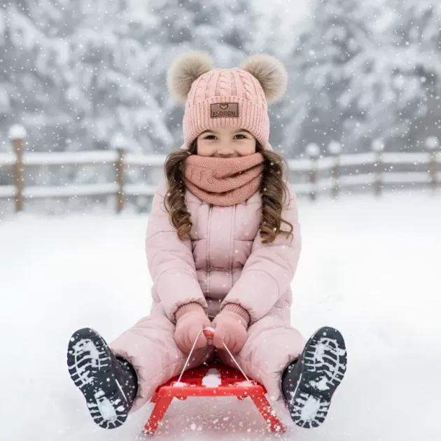 Perfekt til snedækkede legepladsture! Stoffet holder fugten væk, og tørklædet bliver på selv under vild leg.