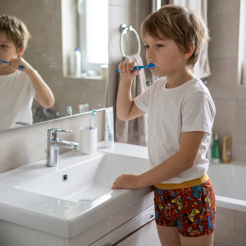 Farverige print skaber glæde i hver morgenrutine. Bløde sømme hjælper med at undgå kløe eller mærker under aktiv leg. Åndbart materiale leder sved væk og giver pålidelig komfort. Livlige designs gør det sjovt at klæde sig på hver gang.