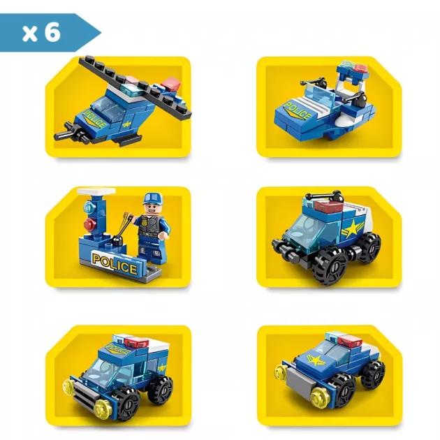 Dette sæt er så sjovt! Jeg har lært, hvordan forskellige klodser passer sammen og lavede en politikopter med min søster.