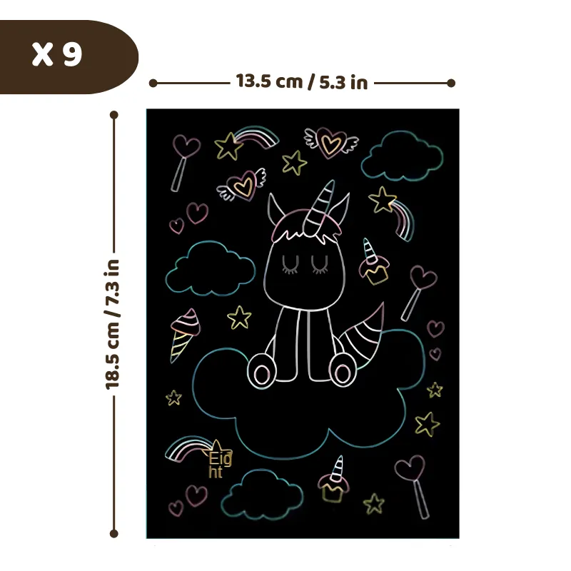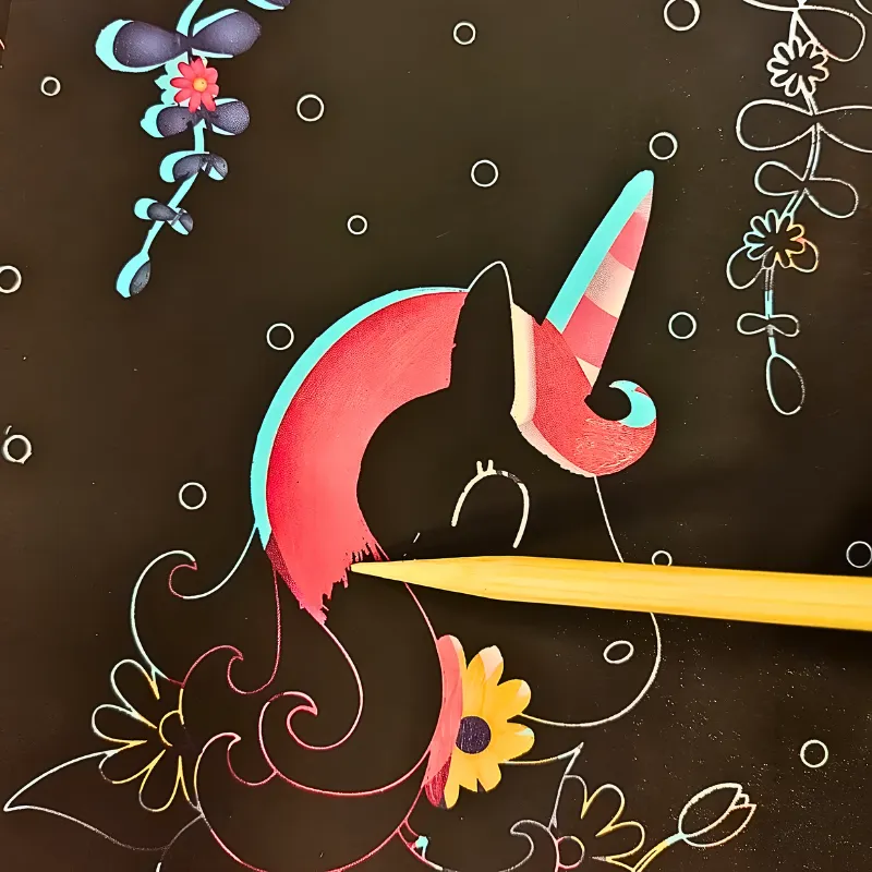 Se kreativiteten blomstre, når hvert ark afslører lyse farver. Magiske motiver kommer frem for hvert strøg, og holder børn engagerede. Smukke glødeffekter gør hvert kunstværk til et unikt mesterværk.