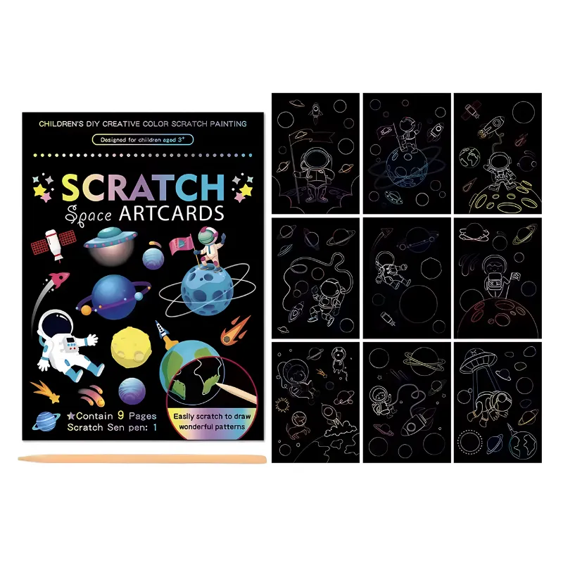 At skrabe på hvert papir føles som et magisk trick! Så mange lyse nuancer dukker op. Jeg kan godt lide at vise min kunst til min familie i mørket.