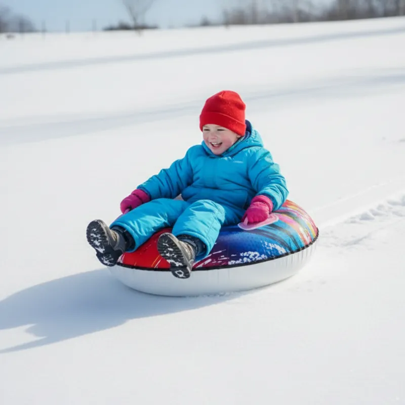 B vil elske suse ned adker i lyse farver Den robuste bund sørger for, at hver tur bliver glidende på sneen. Håndtagene giver støtte, så børn føler sig sikre og trygge. Sneeventyr bliver sikre, sjove og fyldt med latter.