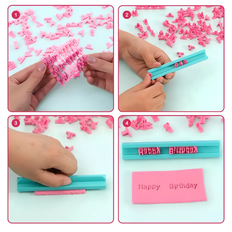 Gør hver bagning personlig med smarte stempelværktøjer. Nemme at bruge, disse redskaber hjælper med at tilføje personlige beskeder til ethvert projekt. Imponer let venner med navne, ord eller sjove tal.