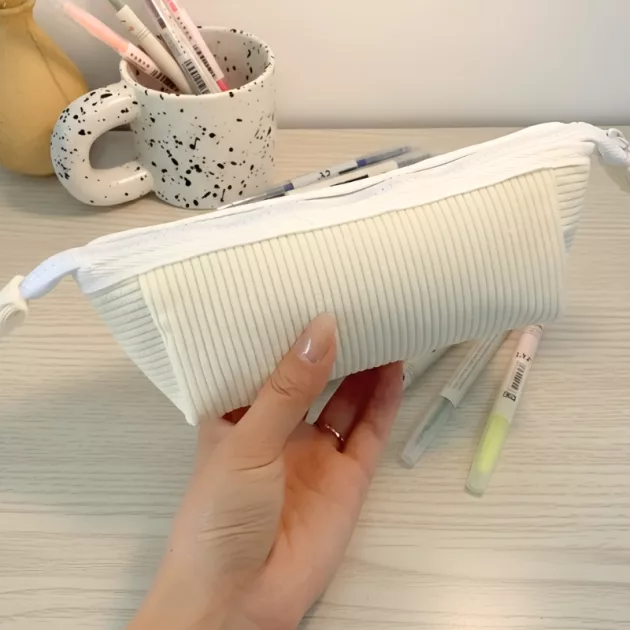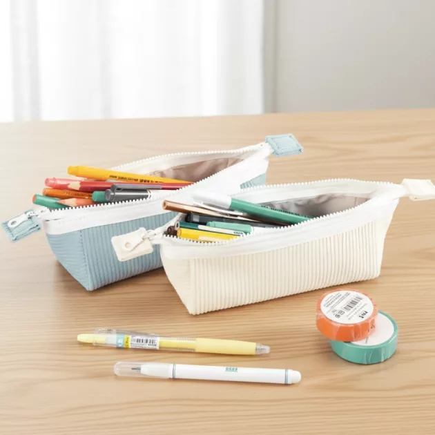 Jeg kan godt lide det bløde stof på mit etui. Mine blyanter ligger sikkert indeni, og lynlåsen åbner sig aldrig af sig selv, selv når jeg smider den i rygsækken.
