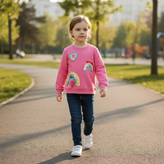 Min datter vil aldrig tage denne sweatshirt af! Farverne er så glade, og den holder hende varm hver kølig morgen i skolen.
