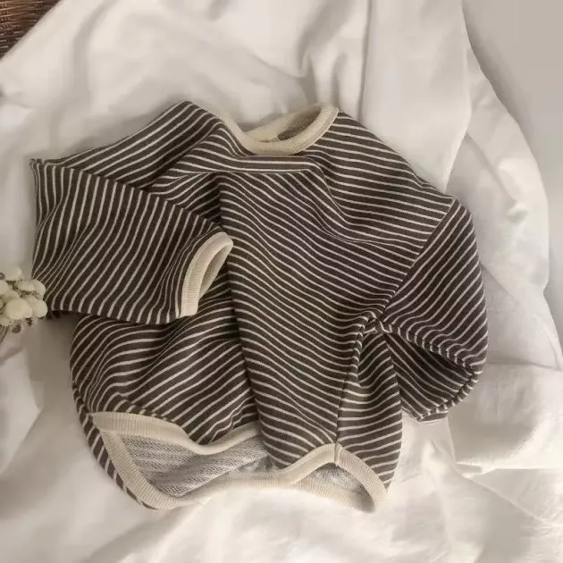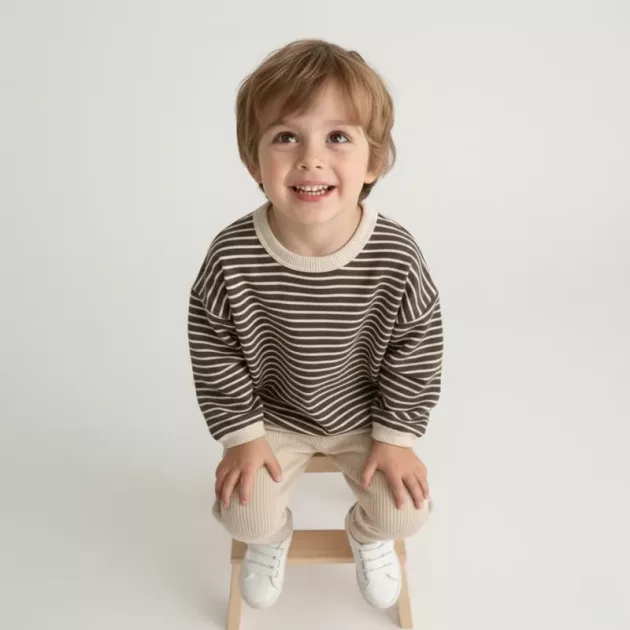 Blød bomuld holder huden behagelig under leg og hvile. Fine striber skaber et charmerende look til hverdag. Kvalitetsstof gør det let at vaske, og farverne holder længere. Påklædning føles sjovt og nemt for de små.