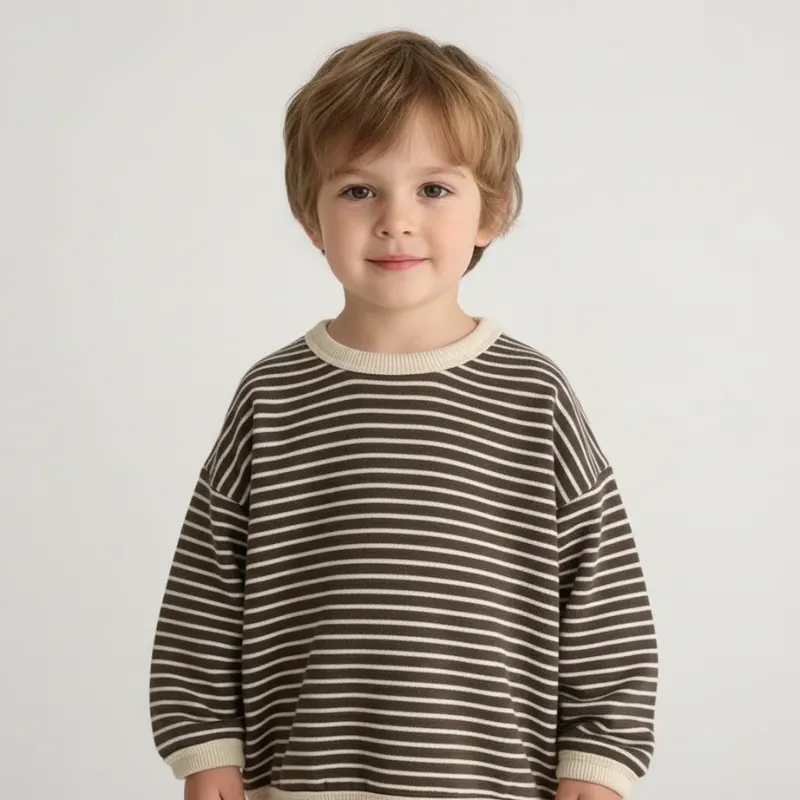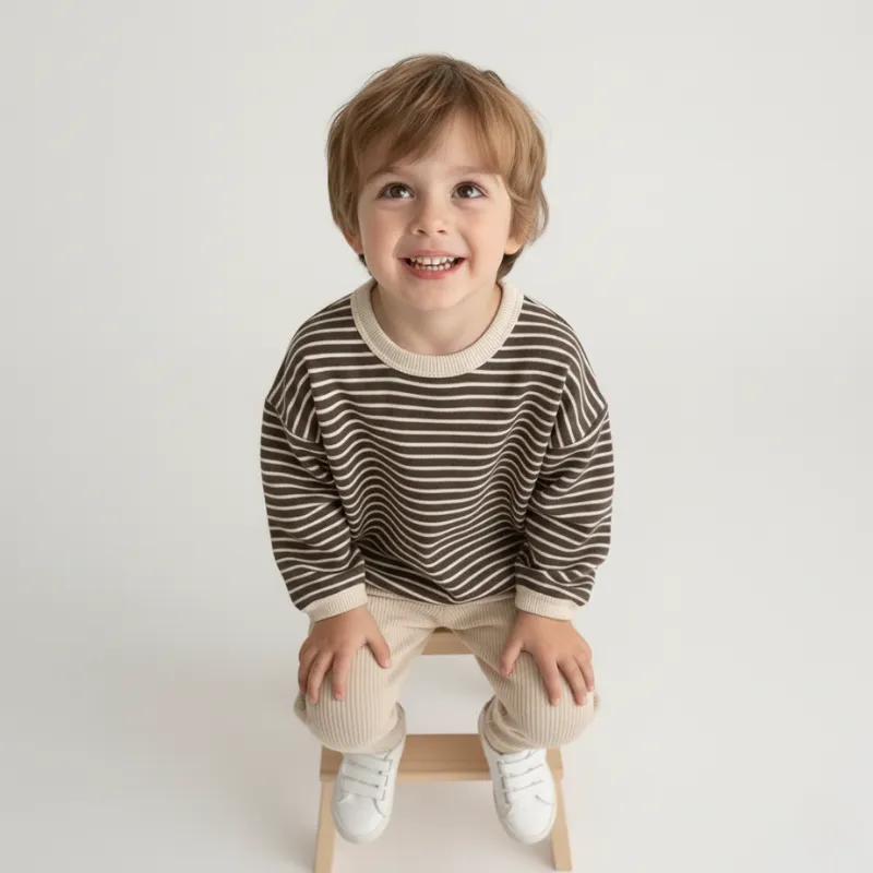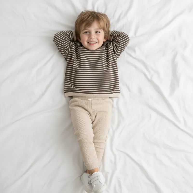 Blød bomuld holder huden behagelig under leg og hvile. Fine striber skaber et charmerende look til hverdag. Kvalitetsstof gør det let at vaske, og farverne holder længere. Påklædning føles sjovt og nemt for de små.