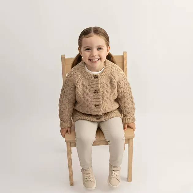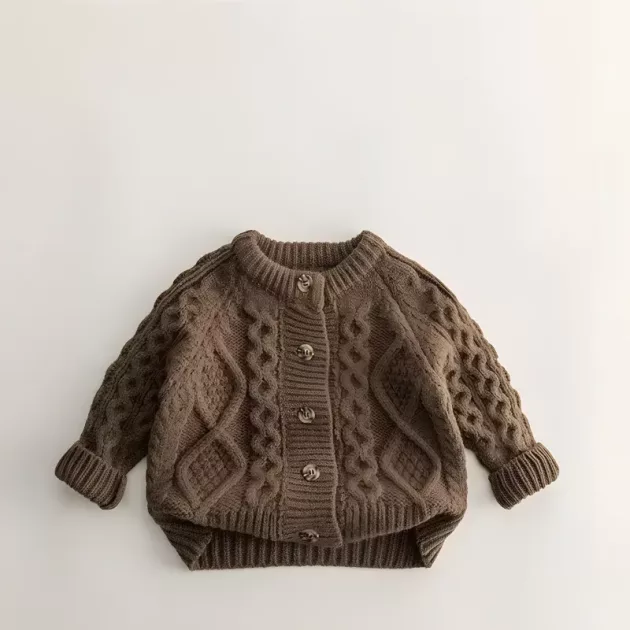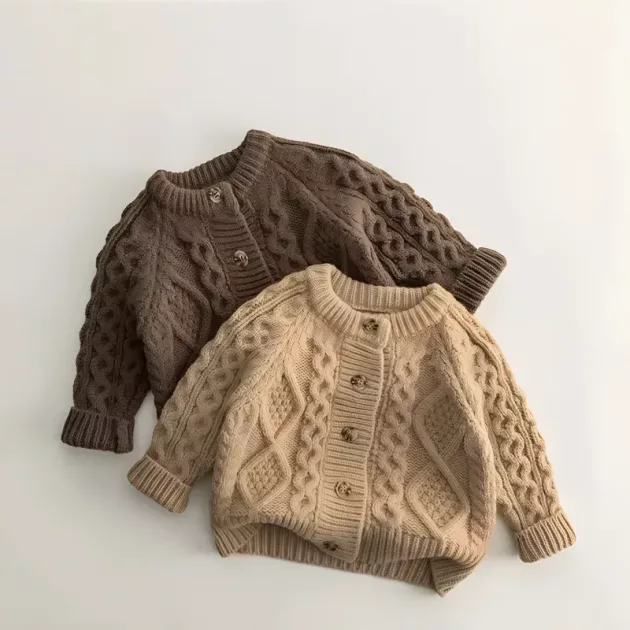 Sød Strikket Chunky Cardigan med Knapper til Børn
