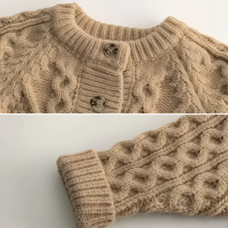 Sød Strikket Chunky Cardigan med Knapper til Børn