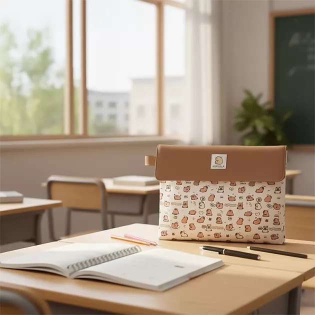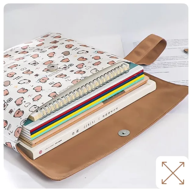 Mine papirer og arbejdsbøger forbliver rene og organiserede inde i denne rigtig søde taske. Lukningen holder alt inde, selv når jeg har travlt.