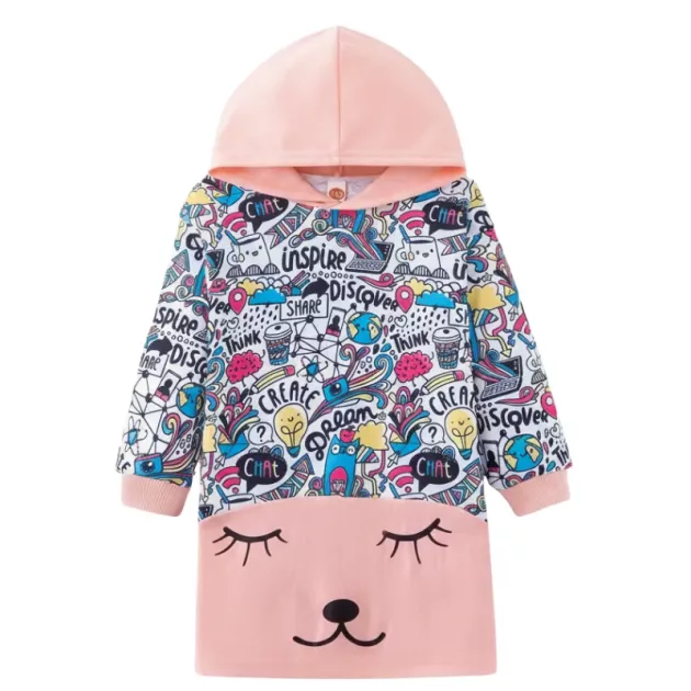 Min datter elsker virkelig sin nye hættetrøje-kjole. Dyreprintet gør det sjovt at tage tøj på om morgenen, og stoffet er super blødt.