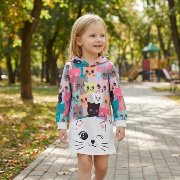 Mine børn vælger altid denne hættekjole til legeaftaler. De lange ærmer er perfekte på blæsende dage, og farverne er så klare.