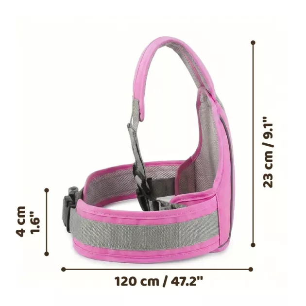Sikker støtte - Bred sele fordeler trykket blidt over bryst og talje. Forstærkede syninger og solide clips modstår træk under bump eller nedbremsning.