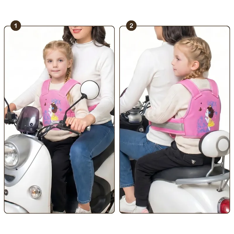 Jeg kører på en lille scooter, og denne sele fungerer perfekt. Mit barn sidder rank, holder i baghåndtaget, og den bløde polstring forhindrer røde mærker.