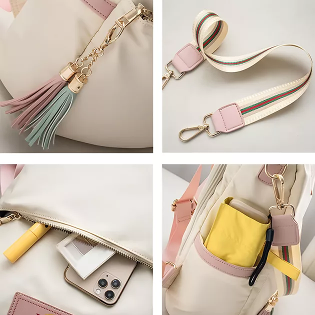 Jeg bruger denne taske til skole og klubber efter skole. Stropperne er bløde og gør ikke ondt på mine skuldre. Jeg elsker også farven!