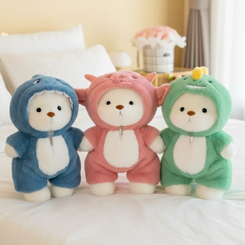Hver gang jeg er ked af det, hjælper det at kramme min bamse med den søde hættetrøje. Den er virkelig blød og har klare farver. At skifte dens tøj er min yndlingsbeskæftigelse.
