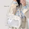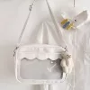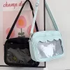 Jeg pyntede den klare lomme med klistermærker. Det ser fantastisk ud og gør tasken meget personlig og sjov at bruge hver dag.