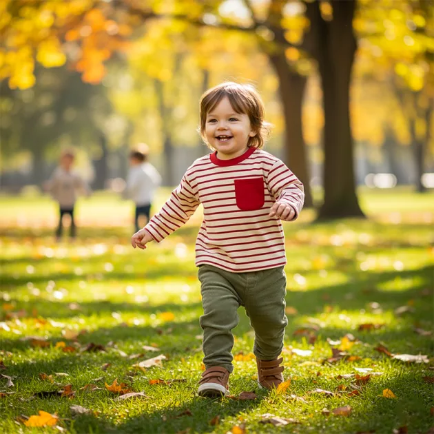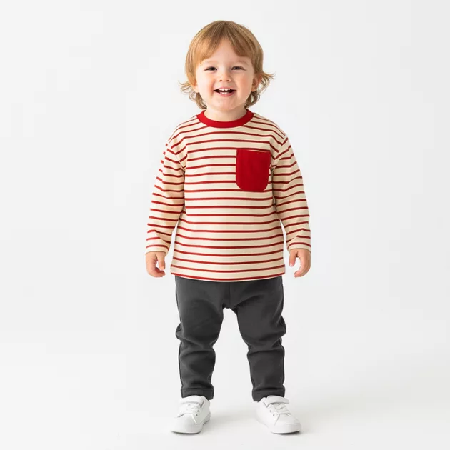 Køligt vejr bør aldrig sætte en stopper for leg og udendørs sjov. Denne stribede langærmede T-shirt beskytter mod træk men føles stadig let. Smukke farver og legesyge lommer matcher nemt enhver stil.