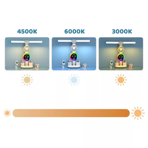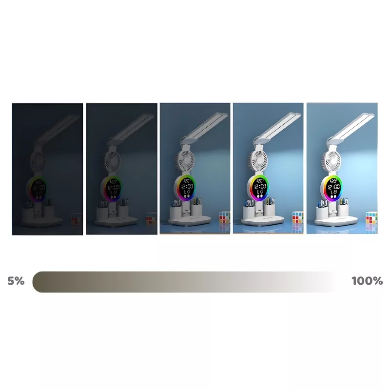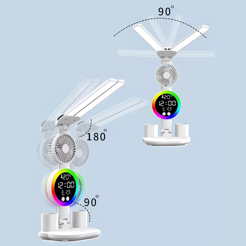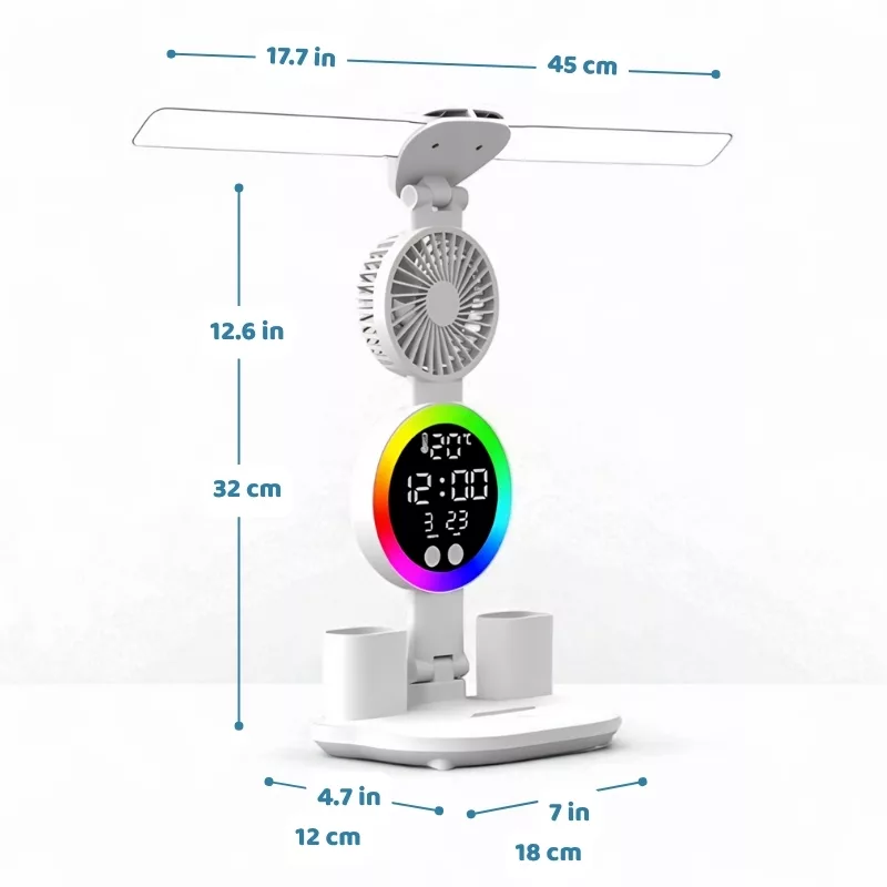 Jeg bruger lampen hver aften til lektier. Blæseren holder mig kølig, og uret hjælper mig med at holde styr på tiden. Super hjælpsomt!