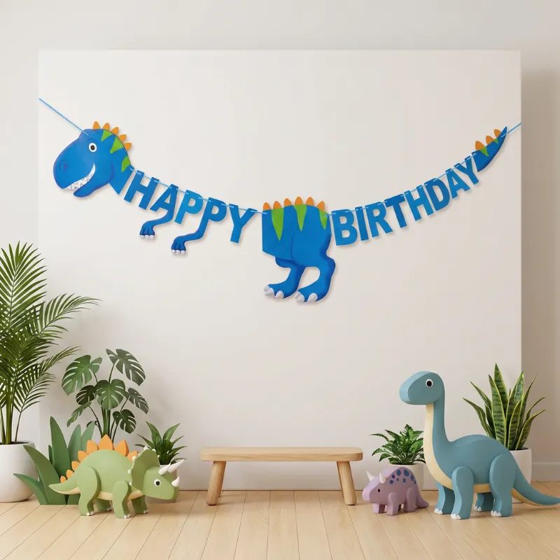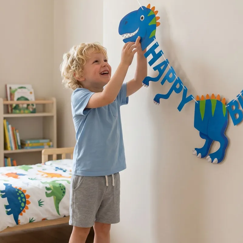 Lyse bannere forvandler straks almindelige rum til spændende forhistoriske scener. Farverige skabninger vækker fantasien, mens gæsterne ankommer og føler sig imponerede og velkomne. En enkel opsætning sparer planlægningstid og giver familier frihed til at skabe glædelige minder.