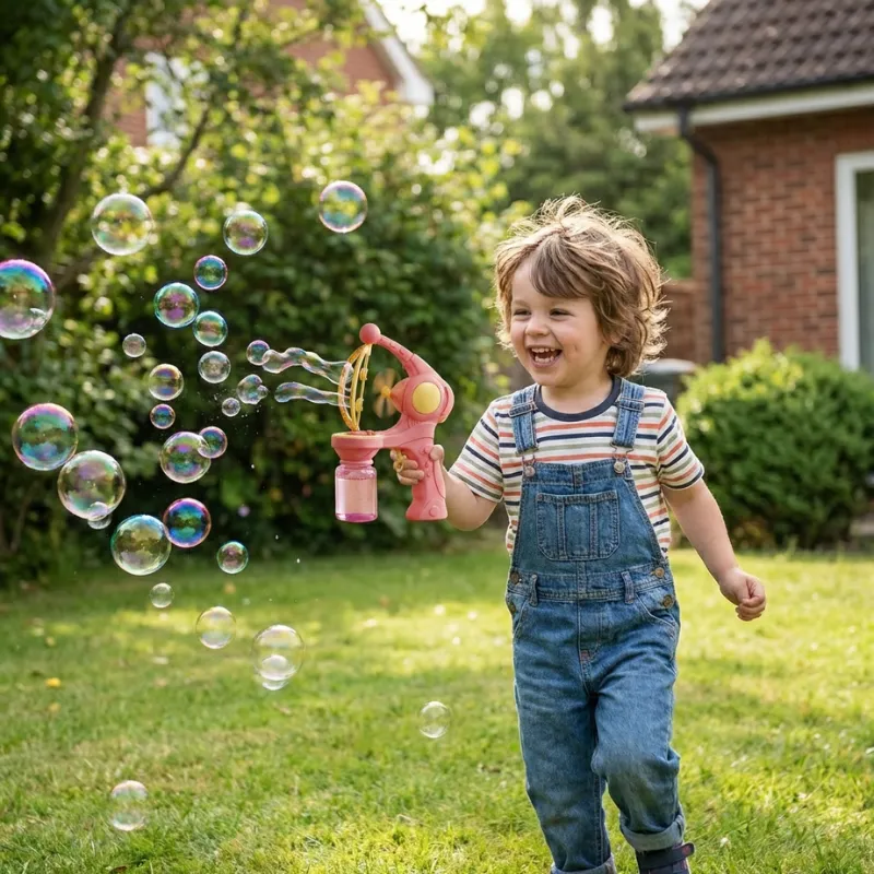 Se dit barns ansigt lyse op af glæde med det samme. Denne fantastiske boblepistol fylder enhver dag med latter og klare farver. Hurtig at sætte op og nem for små hænder at bruge, så børnene forbliver engagerede udendørs. Skab særlige øjeblikke sammen, mens kreativitet og bevægelse opmuntres.