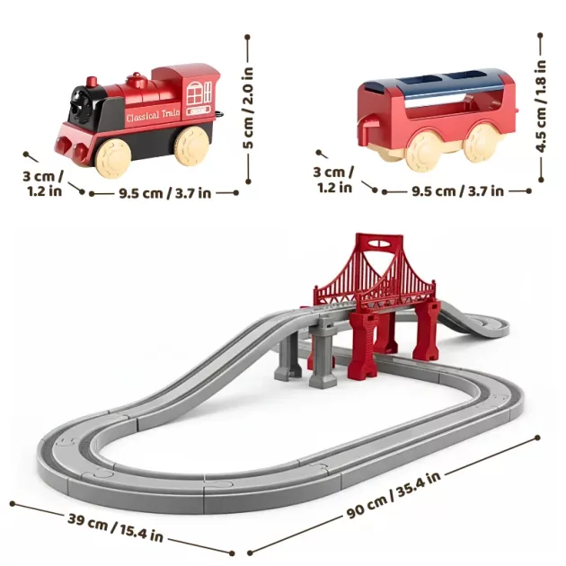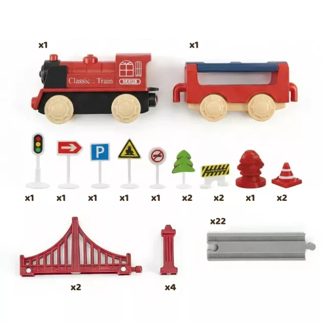 Børn elsker at se toget køre rundt i alle sving. Delene forbindes let, så enhver forælder nemt kan samle sættet. Farver og former holder de smås opmærksomhed fanget under legen. Hver legestund sætter gang i nye historier og glade opdagelser.