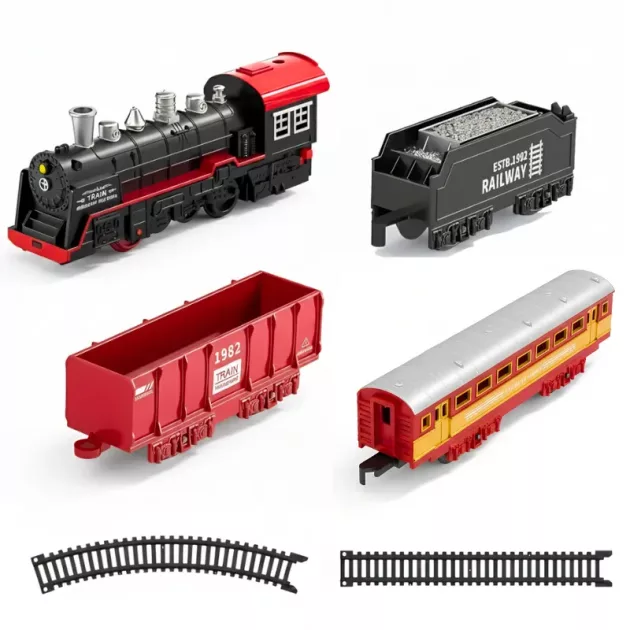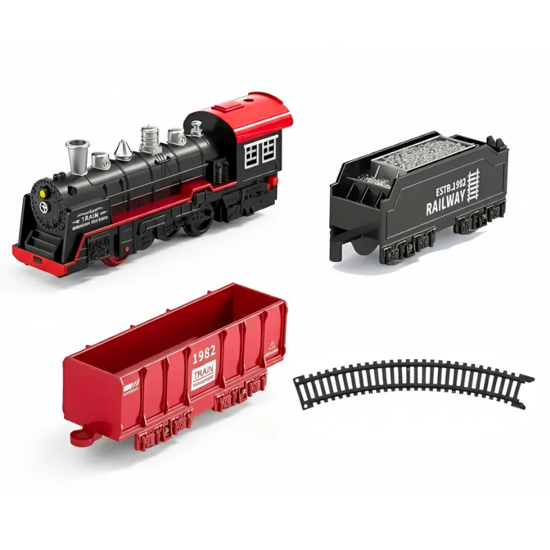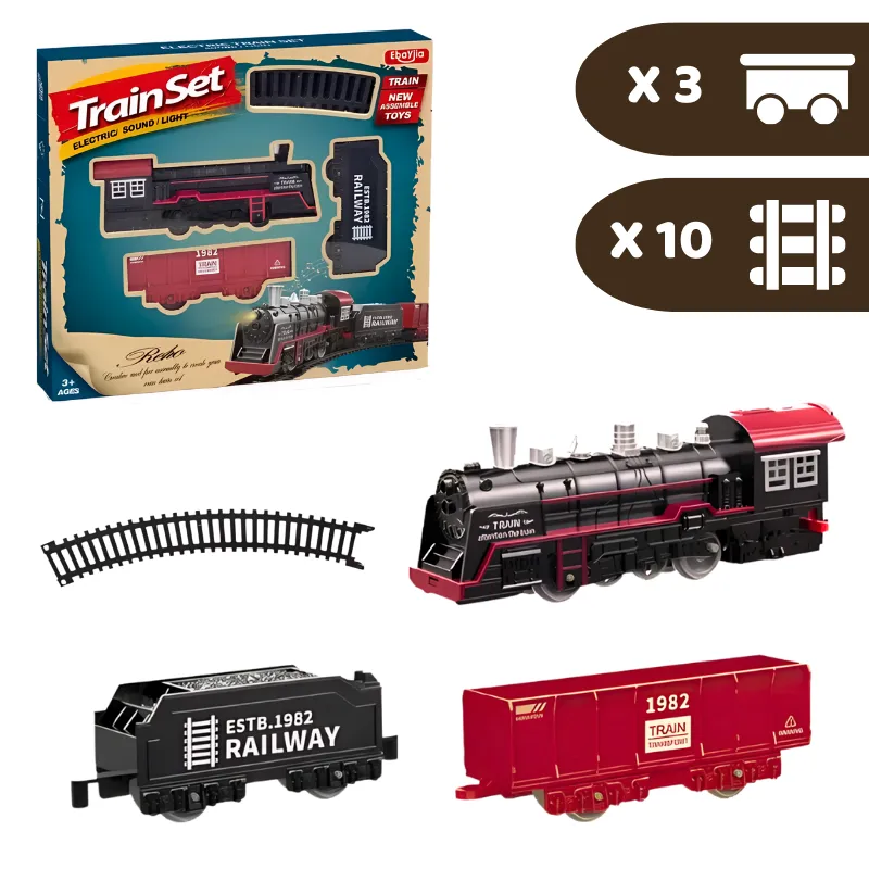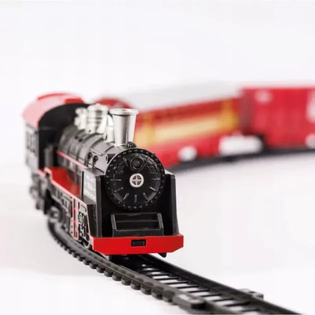 Toget kører rundt og rundt og laver realistiske lyde, ligesom et rigtigt tog. Jeg elsker at lave nye baner hver gang, jeg leger.
