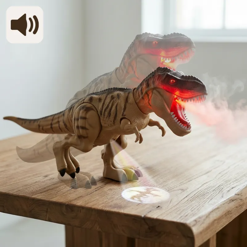 Interaktiv oplevelse - Børn engagerer sig dybt, når dinosauren går, sprøjter og lægger æg. Hver handling vækker nysgerrighed og aktiv problemløsning.