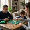 Kvalitetsfællesskab - Forældre og børn interagerer, deler latter og venlig konkurrence. Varige minder skabes ved at samarbejde og støtte hinanden.
