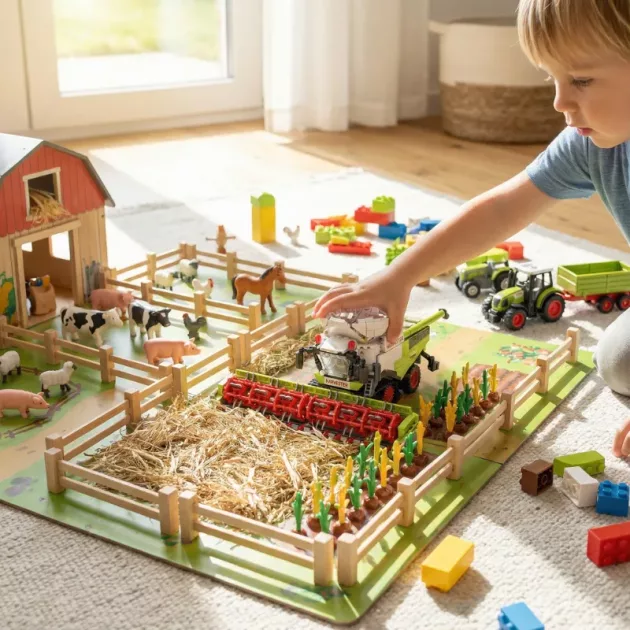 Børn kan bygge deres egne unikke landbrugskøretøjer derhjemme. Hver farverig del passer perfekt sammen og fremmer fokus og rolige hænder. Fantasien vokser, når de små skaber spændende scener med hver klods. At se dem lære giver ægte tryghed.