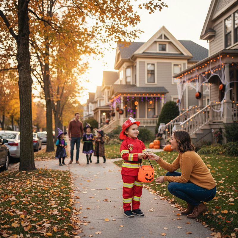 Brandmandskostumet er nemt at tage på. Min søn er stolt og inviterer mig altid til at være med i hans brandøvelser rundt i huset.