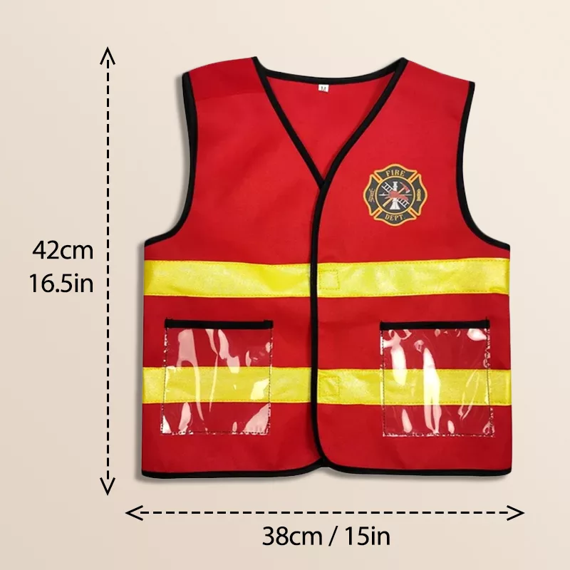Vesten og hatten ligner præcis de rigtige! Min lillebror elsker at lege brandmand og redde vores bamser.