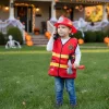 Vi fik dette brandmandsæt til Halloween, og vores søn var begejstret. Ingen besvær med at tage vesten på, og den kløede slet ikke.
