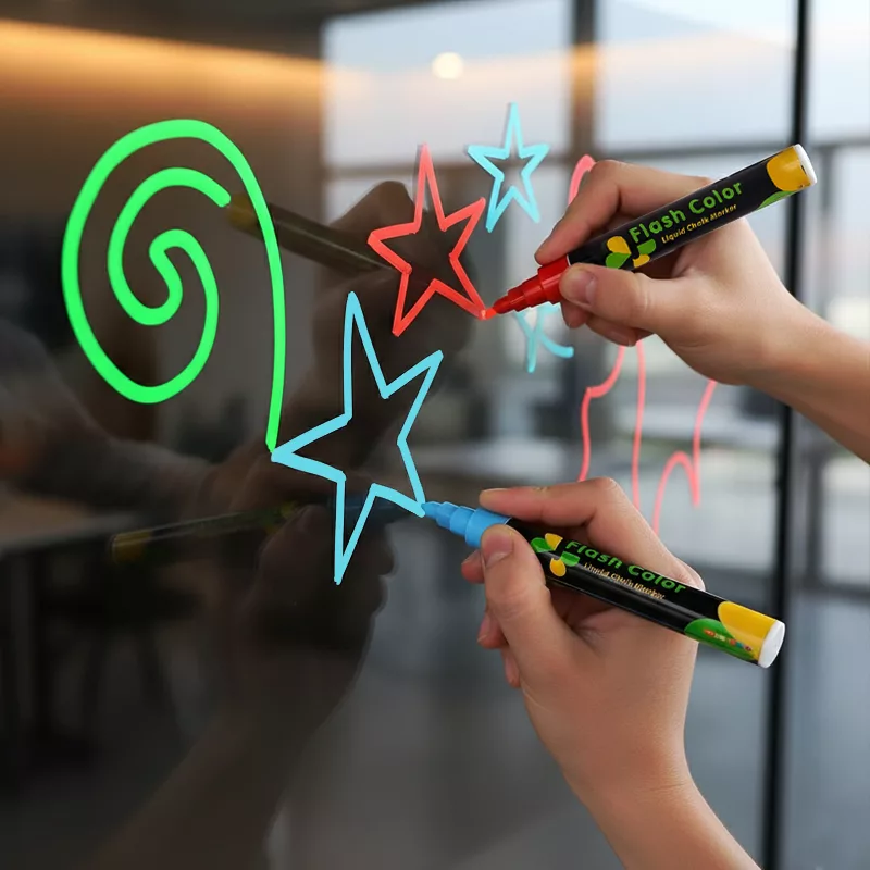 Super klare overstregningstuscher, der ikke ødelægger mit tøj eller bordet. Jeg får altid lyst til at tegne mere, fordi oprydningen er let og hurtig.