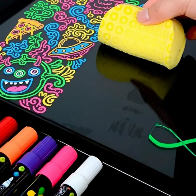 Jeg elsker, hvor skinnende mine plakater ser ud. Farverne er stærke, og jeg kan viske fejl ud uden at efterlade pletter. Det er virkelig sjovt at bruge dem!