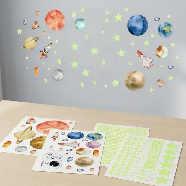 Disse rum-klistermærker forvandlede mit barns værelse til en fantasigalakse. Hun elsker gløden.