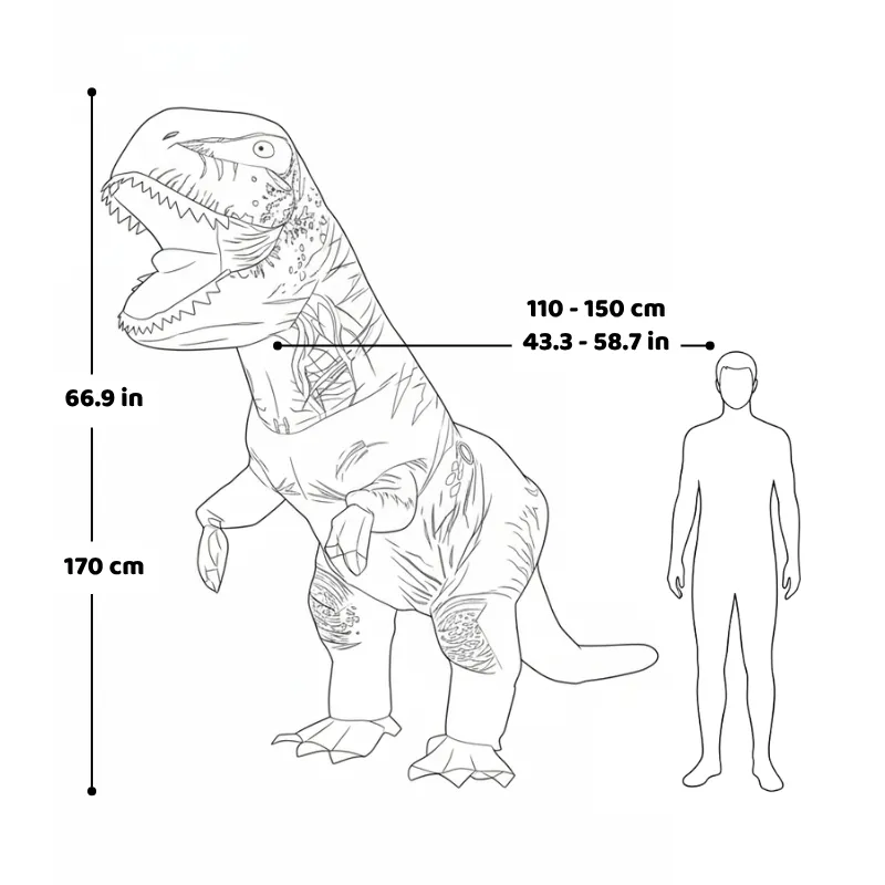 Forvandl enhver begivenhed til et forhistorisk eventyr på et øjeblik. Se dit barn lyse op af latter, når de tager centrum. Den lette dinosaurdragt bringer smil til enhver fest eller ferie. Nyd ro i sindet, velvidende at sjov og komfort går hånd i hånd.