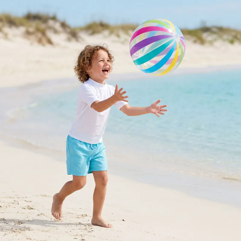 Købte denne farverige bold til vores strandferie, og børnene stoppede aldrig med at løbe efter den. Den kan pakkes fladt i kufferten, hvilket hjalp meget.