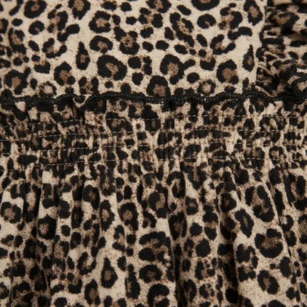 Både komfortabel og praktisk. Mit lille barn sover endda i sin leopardkjole, fordi den er så hyggelig. Printet og flæserne gør den speciel.