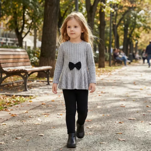 Min niece ser så sød ud i dette sæt. Sløjfen er en favorit, og hun kan bevæge sig frit, mens hun løber og hopper.
