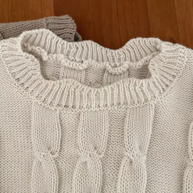 Mit barnebarn plejer ellers at være meget bestemt med sit tøj, så jeg blev helt glad, da hun selv spurgte efter strikken igen. Den er dejlig blød, siger hun, og jeg kan se, at hun leger og bevæger sig frit i den.